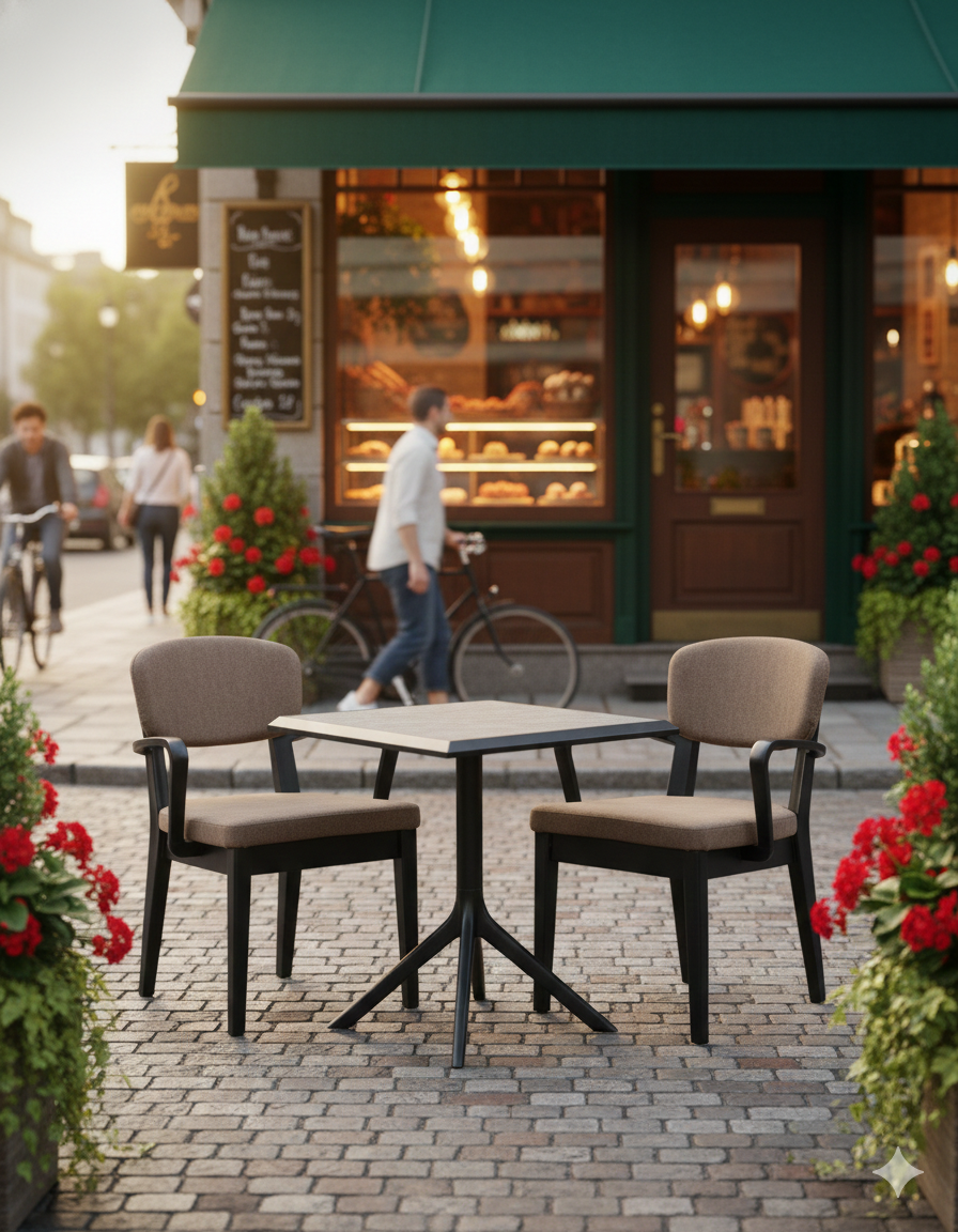 Ares XL - Up Armchair comes with glass fiber reinfoced resin frame using gas injection method and high density polyurethane soft seat and back foam upholstered with a special UV resistant and water repellant artificial leather with level 7 light fastness and and BS5852 crib 1 fire resistance.