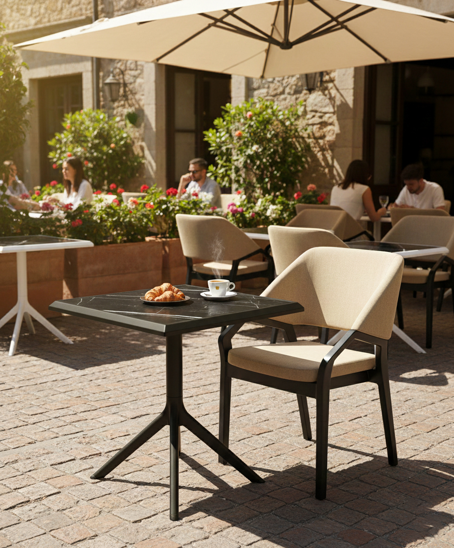 All these features enable Linea armchair to be part of our UNIQUE upholstered indoor/outdoor chair line.