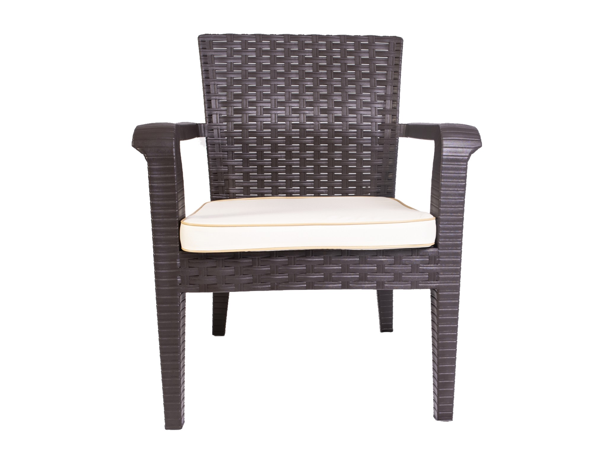 Alaska Armchair is stackable and made of UV resistant resin. The Wide wicker gives unique look and easy to clean. Produced with gas assisted injection technology to ensure durability. Resin structure will never rust or decay. Suitable for commercial and domestic usage. Cushion Features: 6 cm, 28 density soft foam, polyester water repellant fabric, UV protected plastic piping, Velcro fixing at the back.