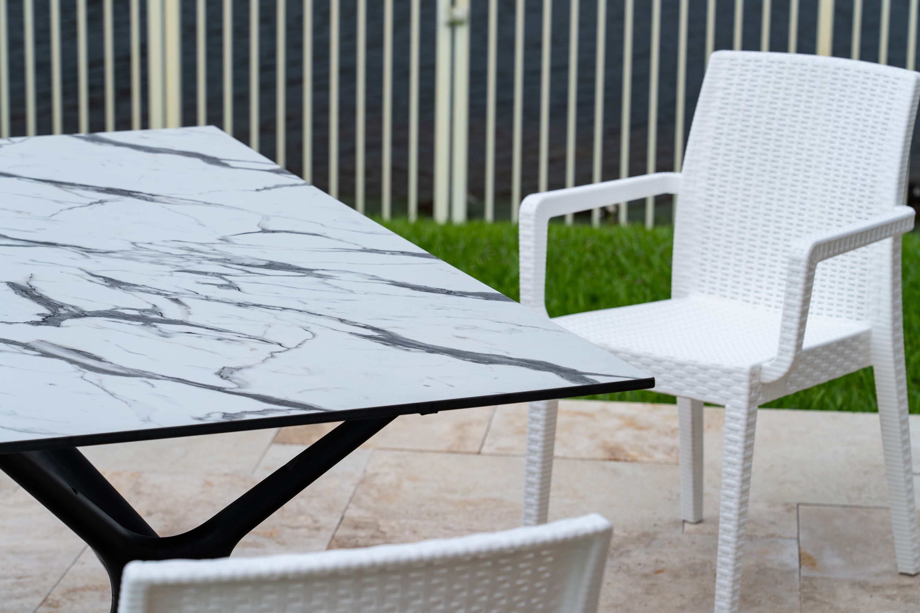 Perfect combination of Modus L base made of UV resistant resin reinforced by glass giber with weatherproof and UV-resistant HPL 12 mm tops. Suitable for indoor and outdoor.