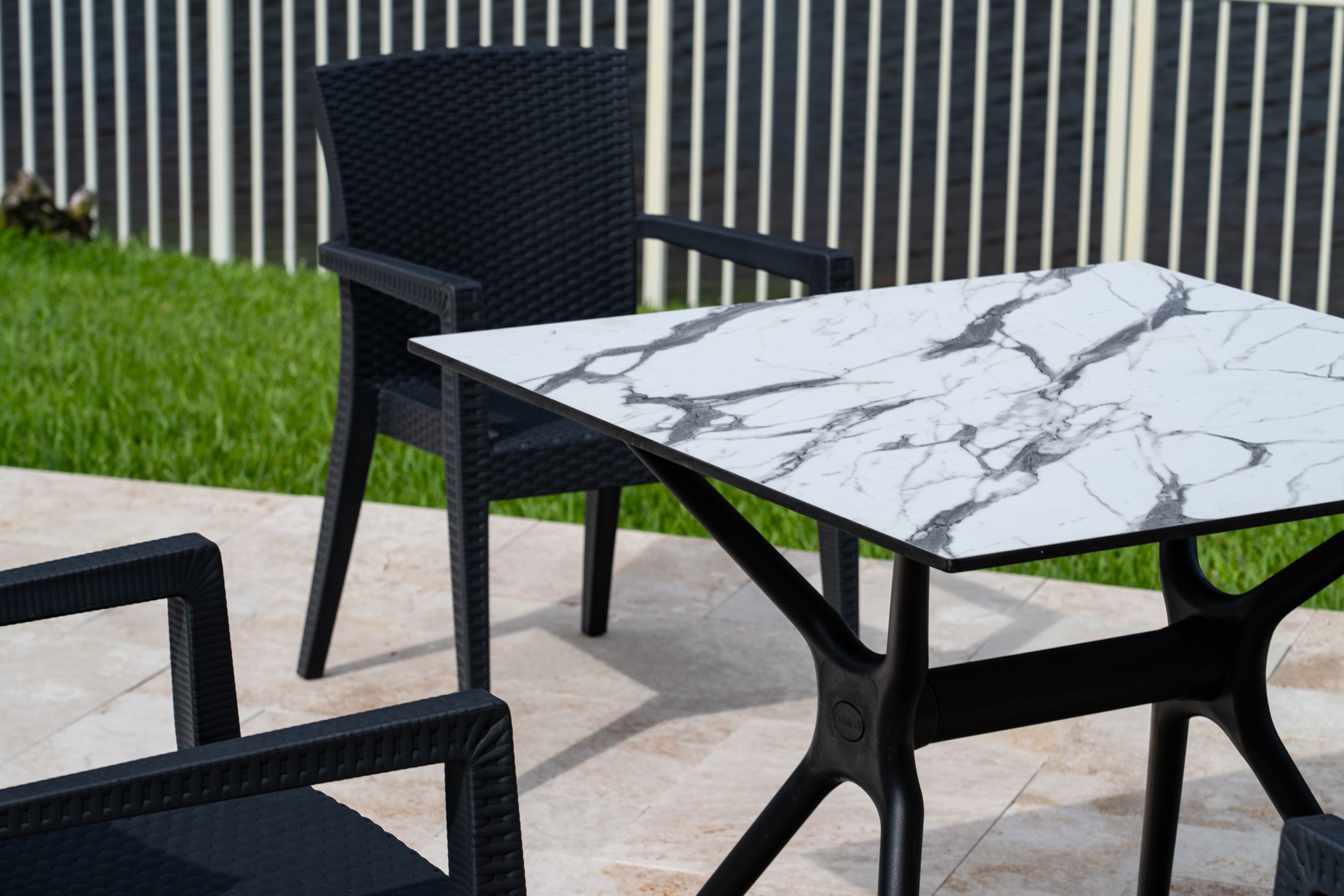 Perfect combination of Modus S base made of UV resistant resin reinforced by glass giber with weatherproof and UV-resistant HPL 12 mm tops. Suitable for indoor and outdoor.